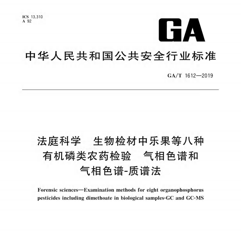 GAT16122019法庭科學生物檢材中樂果等八種有機磷類農(nóng)藥檢驗氣相色譜和氣相色譜質(zhì)譜法 更新日期:2022-12-30 下載包(1)
